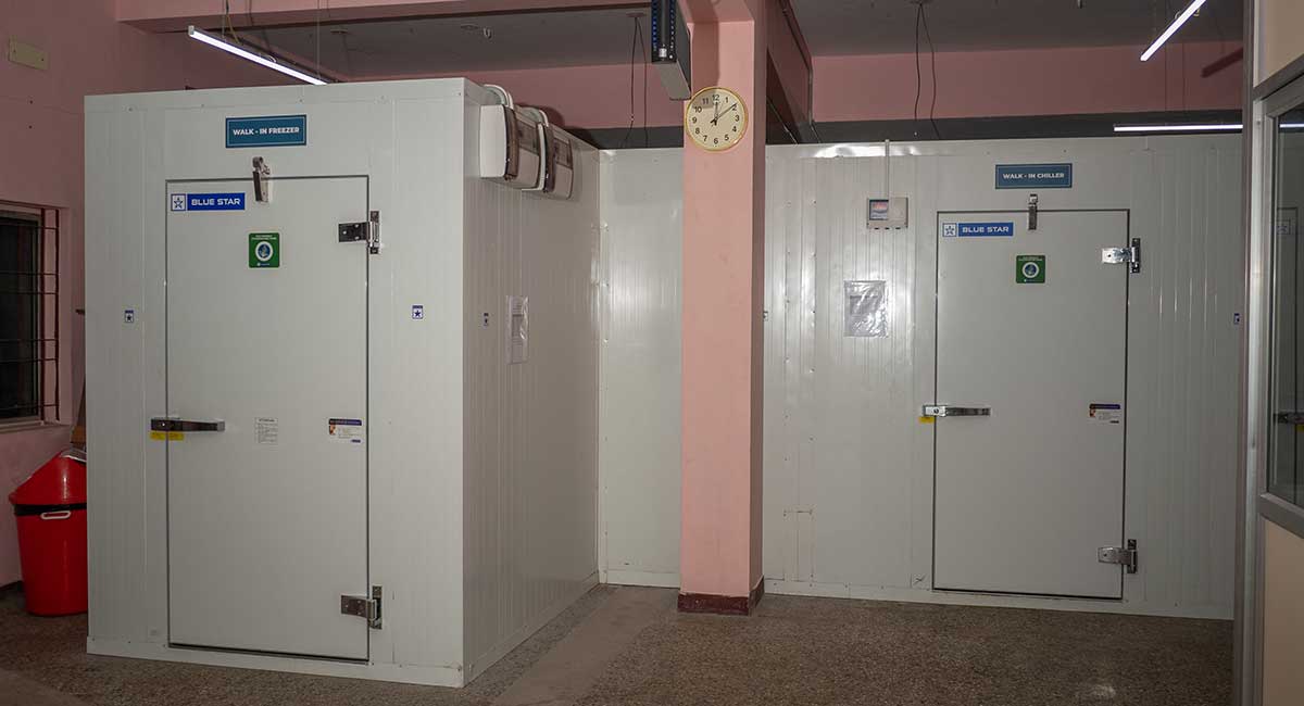 1By2 Foods is equipped with a blast freezer, which ensures that the food items are chilled rapidly to a desired temperature that avoids bacterial multiplication.Then the Products are packed and stored in Perforated Crates at – 18’C or below in the walk-in freezer.